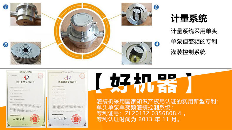 該系列灌裝機(jī)采用流量計(jì)式計(jì)量灌裝原理,多項(xiàng)認(rèn)證,適用于各種規(guī)格(1-5升)的南瓜籽油、榛子油、牡丹籽油、芝麻油、核桃油、山茶油、亞麻籽油、棉籽油、橄欖油、大豆油、玉米油、菜籽油等食用油灌裝。設(shè)備采用高精的旋轉(zhuǎn)編碼器計(jì)量,保證了1%o的灌裝精度,在保證灌裝精度的同時(shí),提高了20%-35%的灌裝速度,操作簡單,維護(hù)方便,節(jié)省人工成本,生產(chǎn)效率更高。