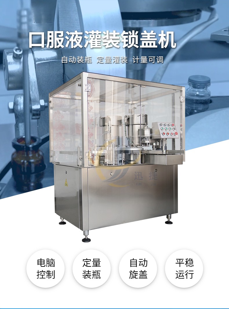 全自動口服液灌裝鎖蓋機適用于多種規(guī)格的口服液糖漿瓶灌裝軋蓋。自動完成進(jìn)瓶、理瓶、灌裝、宋改、軋蓋出瓶等多種工藝。