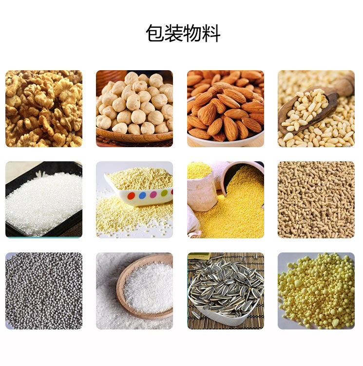 A、農藥、肥料、獸藥、飼料、預混料、添加劑、洗衣粉、食鹽、味精、雞精、白糖、種子、大米等粒狀、粉狀物料的定量包裝。