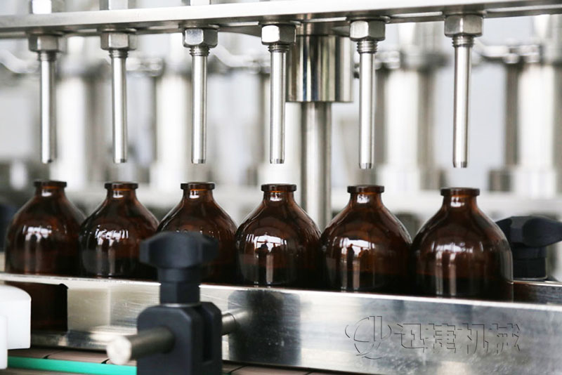 灌裝時(shí)灌裝頭潛入瓶底,緩慢上升,可有效防氣泡。灌裝針頭設(shè)有防滴漏裝置,確保灌裝精度,合格率大于99%。用柱塞式計(jì)量泵執(zhí)行灌裝,精度高;泵的結(jié)構(gòu)采用快接式拆卸機(jī)構(gòu),便于清洗、消毒。