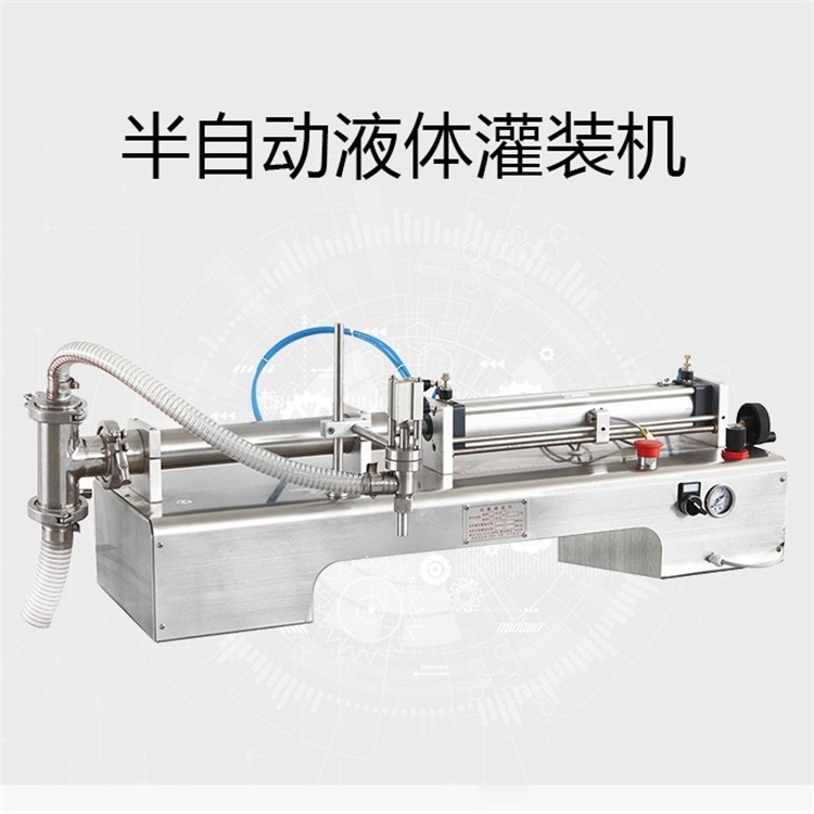 本公司生產的半自動活塞式單頭液體灌裝機是在本公司生產的灌裝機系列的基礎上,引進灌裝技術,進行了進一步的改造和創新,其結構更加簡單合理,精確度高,操作更加簡便,是貴公司填充設備的選擇。本產品只使用于灌裝液體等低濃度物品,不可用于其它途徑。為確保安全生產,請仔細閱讀一下注意事項: